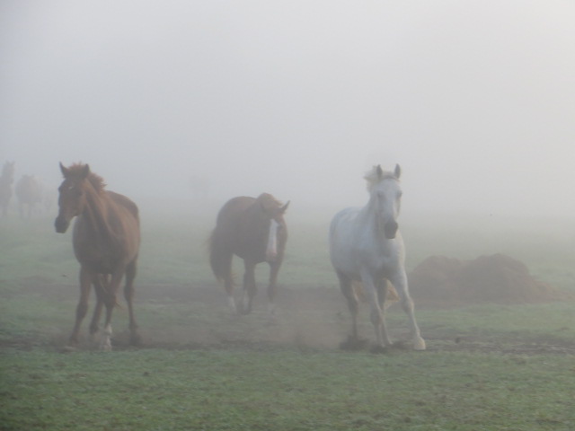 Flyer coming on the run through the fog for breakfast with friends Faune and Silver