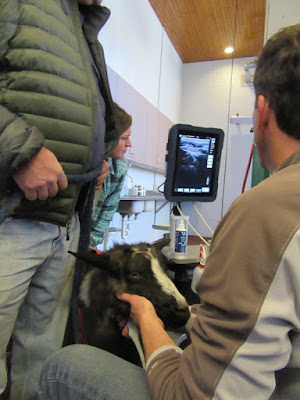 Vet visit number four involved us transporting her to our equine clinic to see our favorite horse vet again. We put a dog harness on Mina (she felt shame wearing a dog harness) and she had another day trip to the vet, this time to Tennessee Equine Hospital. We made quite the entrance as we paraded into the horse clinic with our fainting goat on a leash. We told our vet to do whatever needed to be done; endoscopy, ultraound, x-rays, whatever was needed to try and pinpoint, and hopefully resolve, Mina's issues. Mina had it all. Mina's bills keep adding up and we haven't yet gotten the bill for Mina's second day trip off the farm.